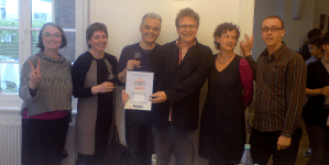 Fröhliche Mitglieder des Projektteams nach der Preisübergabe:
